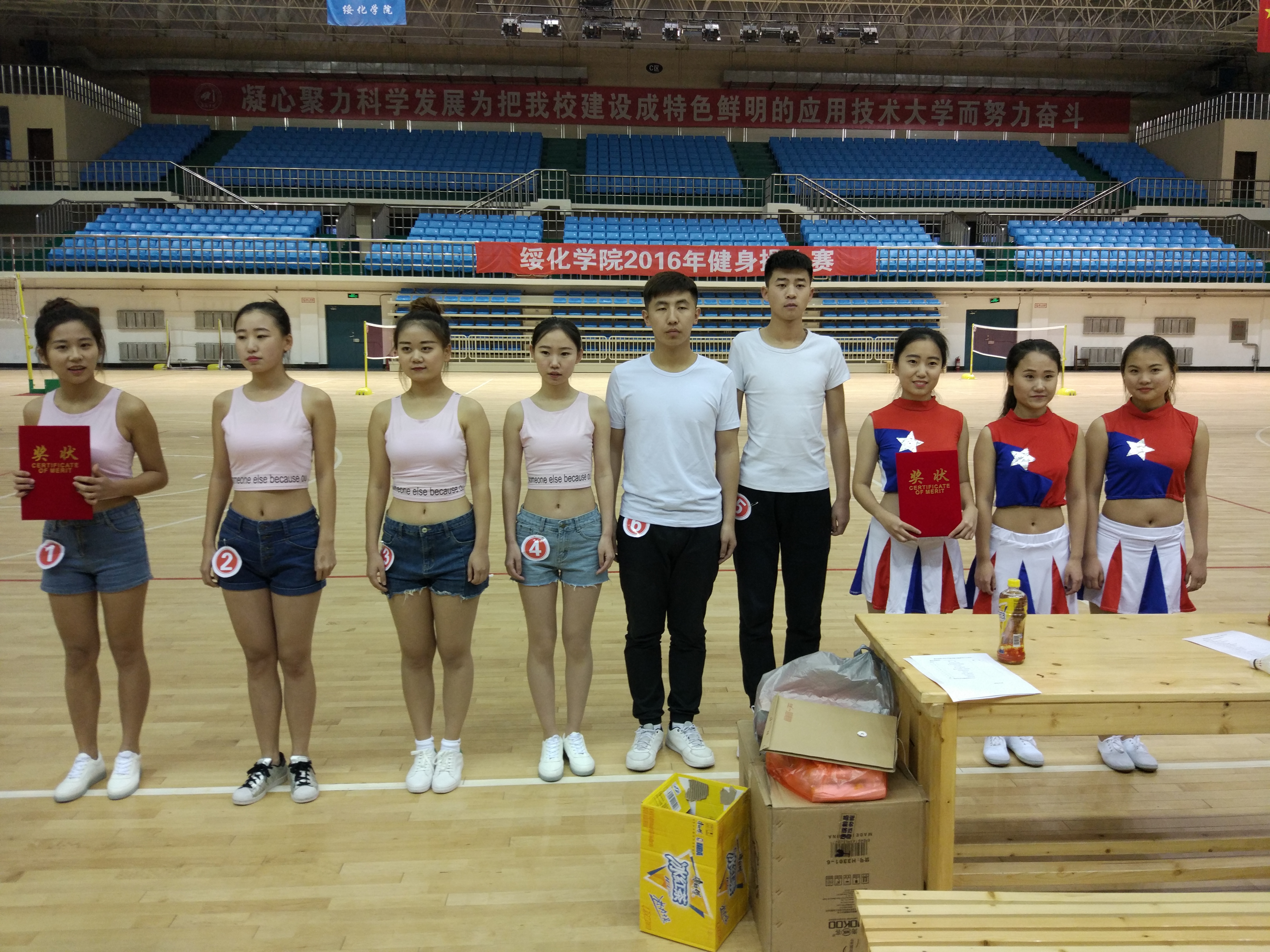伴随着欢快有力的音乐,十支队伍依次走上舞台,将舞蹈动作与体育运动有机融合,用身躯的柔美与肌肉的力量完美演绎了青春的激情与活力,吸引了观众的阵阵掌声。经过评委们的认真评审,最终伟德国际victor1946夺得集体六人项目和集体三人项目的双料冠军,音乐公司、经济管理公司分获集体六人项目的二、三名;教育公司、音乐公司分获集体三人项目的二、三名;艺术设计公司李想、农业与水利工程公司任泓静、外国语公司邓佳等十名同学荣获集体六人项目最佳表演奖。伟德国际victor1946副主任黄起东,伟德国际victor1946教师任玉梅、王晓林、唐敏、冯其斌担任大赛评委。团委书记夏艳霞、公司党总支书记陈江共同观看了比赛,并为获奖选手颁奖。
